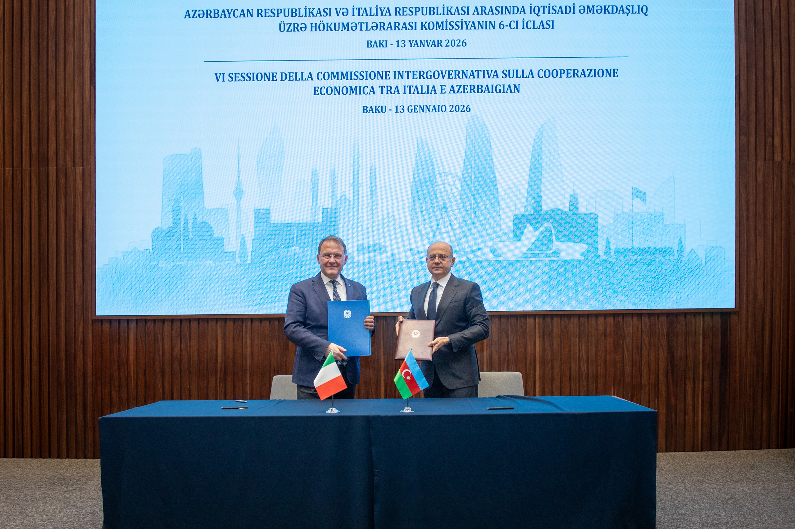 Azərbaycan-İtaliya Birgə Hökumətlərarası Komissiyanın 6-cı iclasının yekunlarına dair Protokol imzalanıb. 2026-2027-ci illərdə 18 istiqamət üzrə 73 tədbirin icrasını nəzərdə tutan Fəaliyyət Planı qəbul edilib.