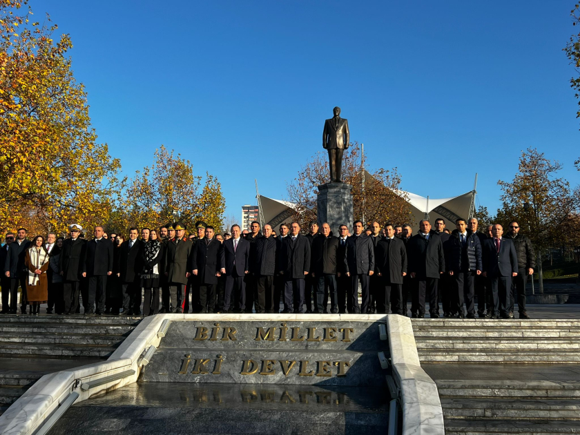 Mərasim iştirakçıları dahi dövlət xadiminin Ankaradakı Heydər Əliyev parkında ucaldılan abidəsi önünə gül dəstələri qoyublar.