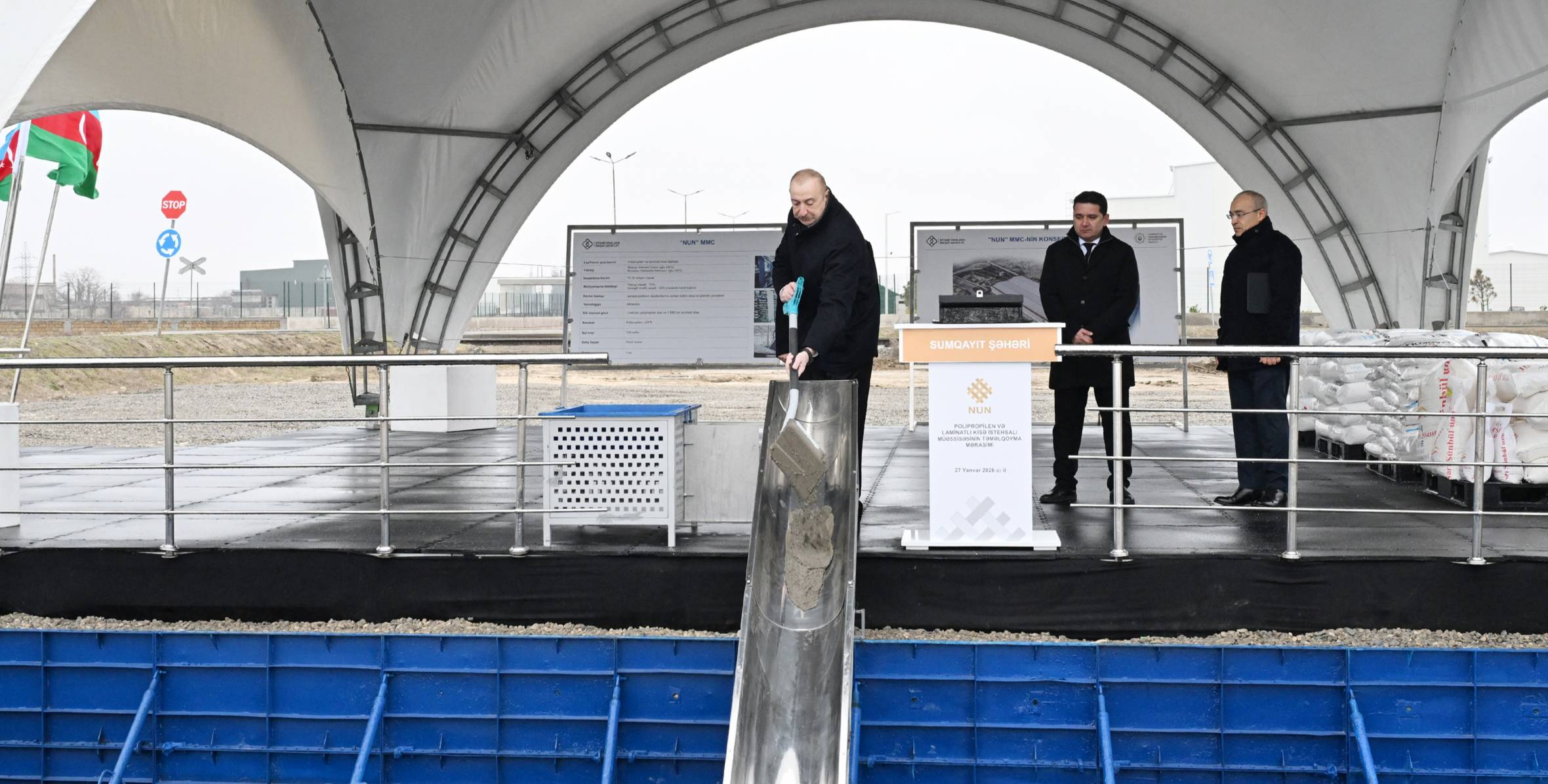 Azərbaycan Respublikasının Prezidenti İlham Əliyev yanvarın 27-də Sumqayıt Sənaye Parkında “Nun” MMC-nin polipropilen və laminatlı kisə istehsalı müəssisəsinin təməlini qoyub.