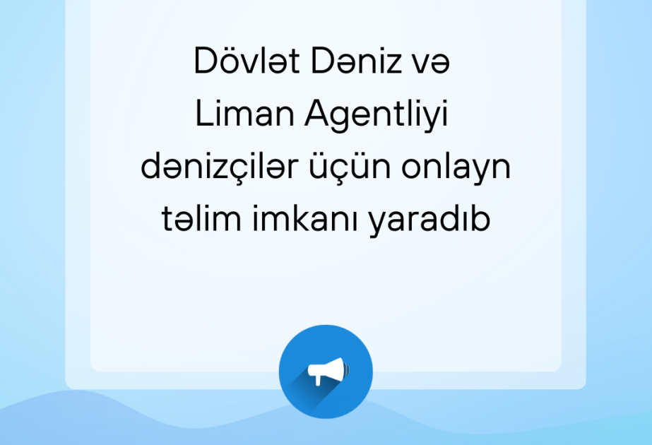Məlumat üçün bildirək ki, cari il ərzində beynəlxalq tələblərə uyğun dənizçilərin bilik və bacarıqlarının artırılması üçün yeni təlimlərin “My Cabinet” platformasına yerləşdirilməsi nəzərdə tutulur.