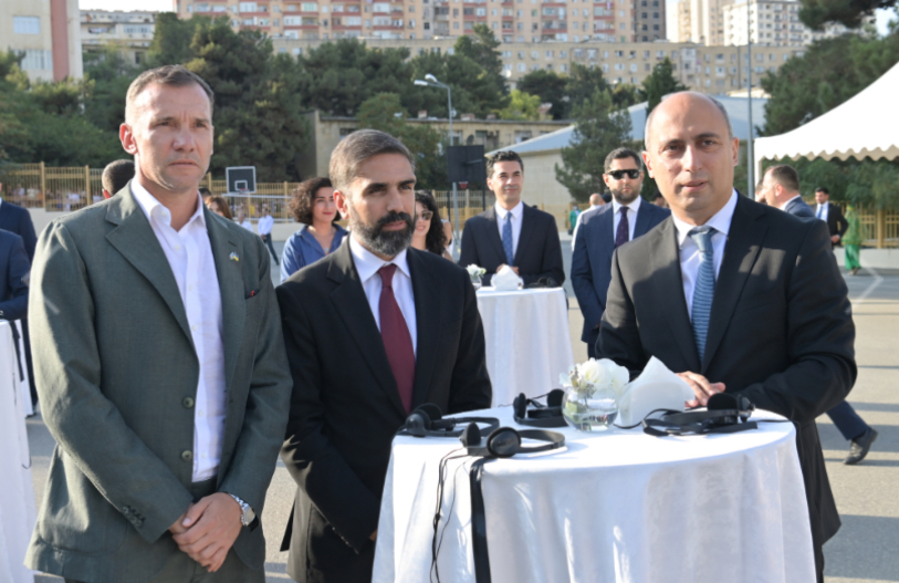 Tədbirdə elm və təhsil naziri Emin Əmrullayev, Azərbaycan Futbol Federasiyaları Assosiasiyasının prezidenti Rövşən Nəcəf, Ukrayna Futbol Assosiasiyasının prezidenti Andriy Şevçenko, futbol ictimaiyyətinin nümayəndələri, məktəblilər iştirak ediblər.
